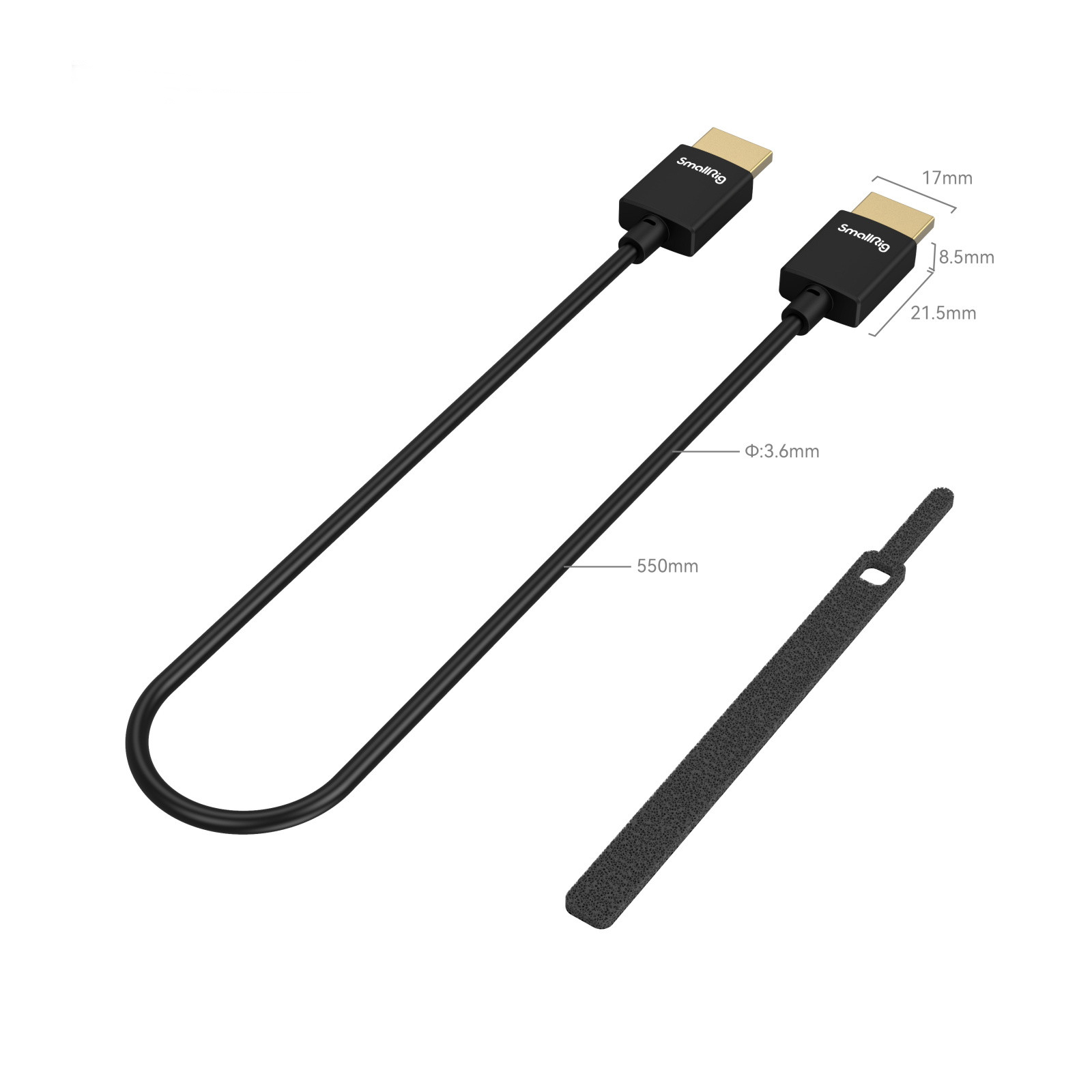 Кабель соответствует стандарту HDMI 2.0, и поддерживает разрешение до 4K при 60 Гц. А благодаря ультратонкому дизайну, он значительно тоньше и мягче, чем обычные кабели HDMI. Низкопрофильные разъемы кабеля не перекрывают доступ к соседним портам камеры. Входящая в комплект стяжка позволяет аккуратно закрепить кабель на оборудовании.